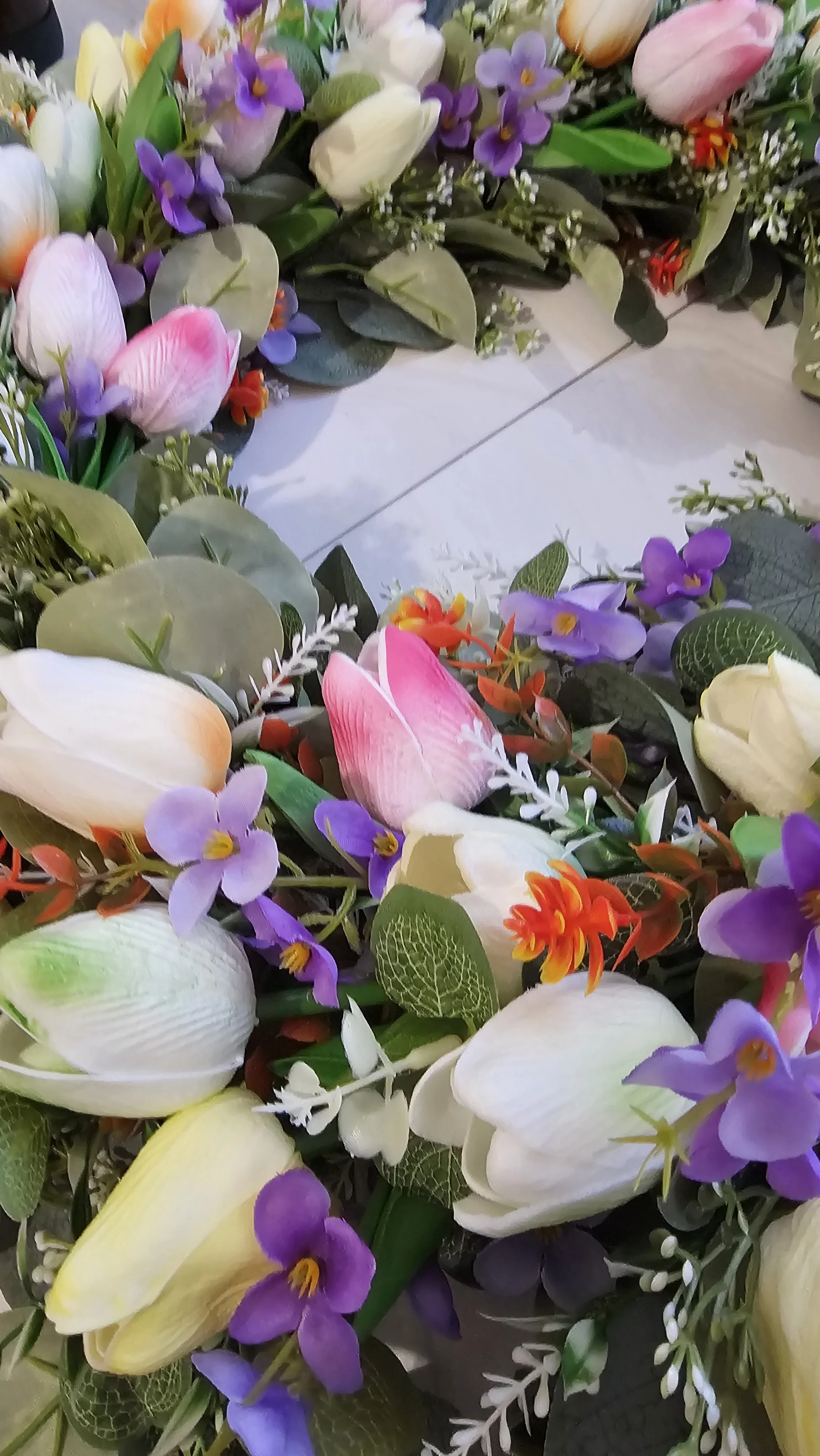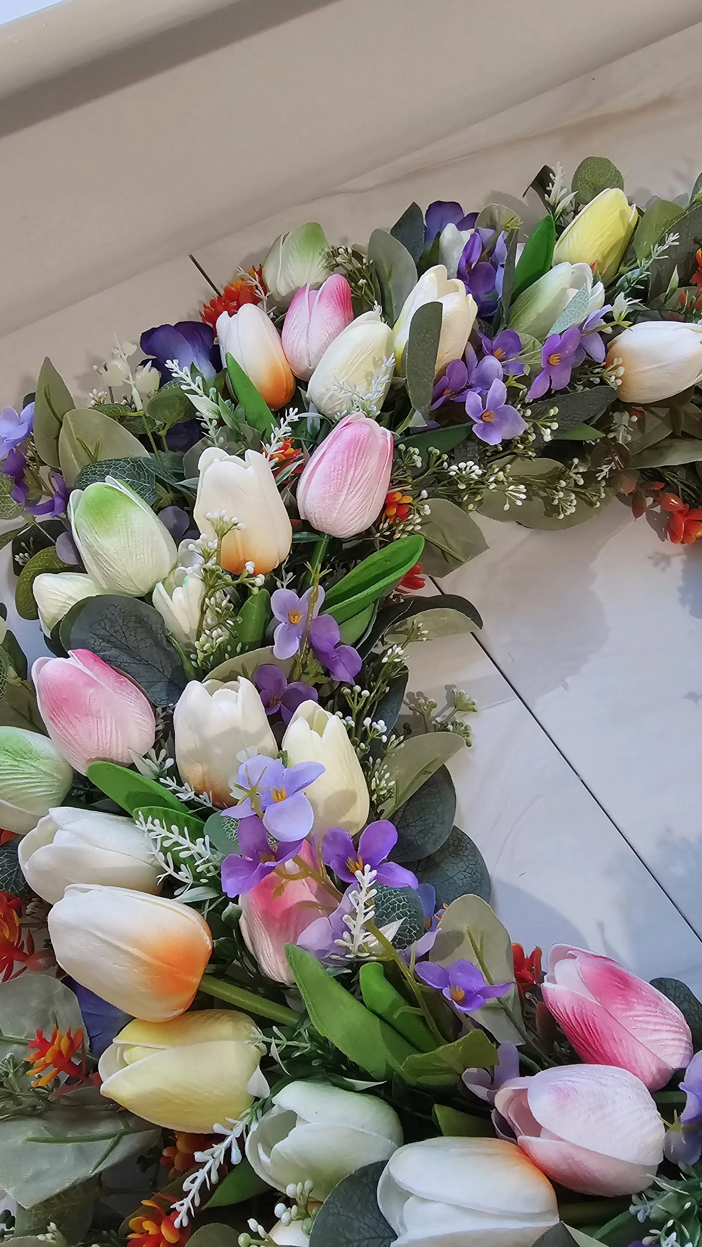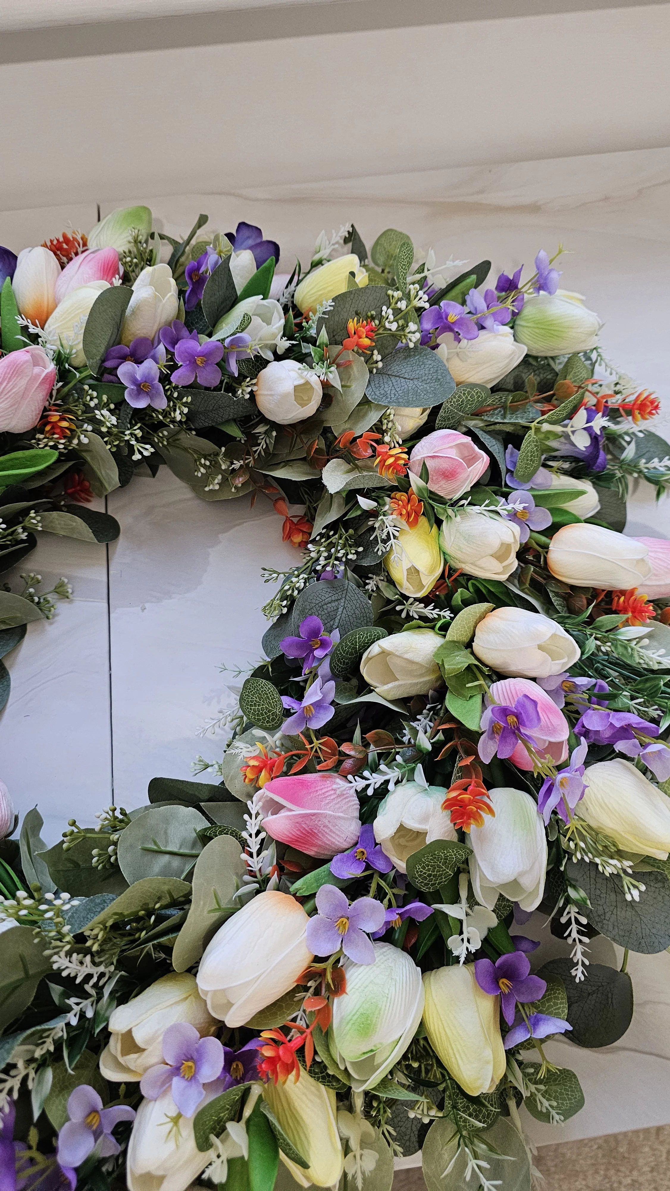 Welcome the beauty of spring with our 🌷 Spring Tulip & Lilac Luxury Wreath, an elegant floral arrangement designed to bring a fresh, garden-inspired statement to your home. This handcrafted wreath features a lush mix of soft two-toned spring tulips, delicate lilacs, subtle orange florals, and layered greenery, creating a full and sophisticated design.